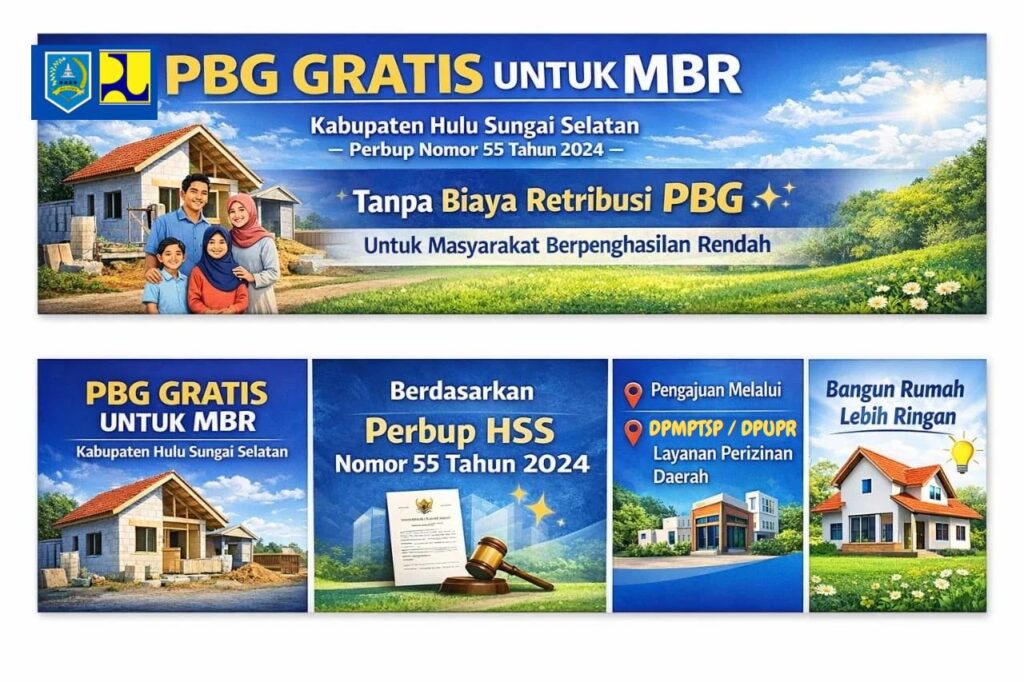 📜 Program ini dilaksanakan berdasarkan Peraturan Bupati Hulu Sungai Selatan Nomor 55 Tahun 2024, di mana retribusi Persetujuan Bangunan Gedung (PBG) dibebaskan / GRATIS bagi MBR.